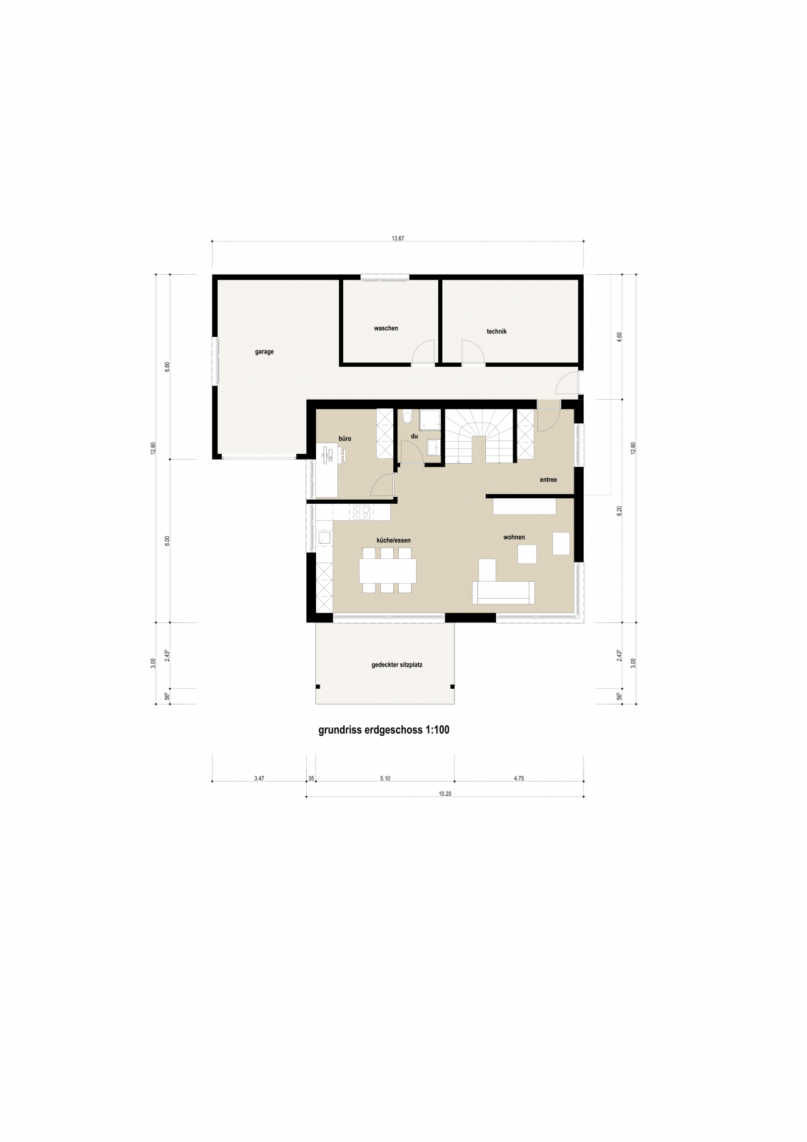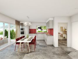 "Berlin" ist unser Vorschlag für ein kleineres Hausbudget. Die Bruttogeschossfläche beträgt 168 m2. Trotzdem müssen sie auf nichts verzichten. Das Haus ist klein aber fein konzipiert und deshalb äusserst pflegeleicht. Auf zwei Stockwerken gebaut, mit Flachdach als Abschluss bietet unser Hausbeispiel alles, was den heutigen Bedürfnissen entspricht.