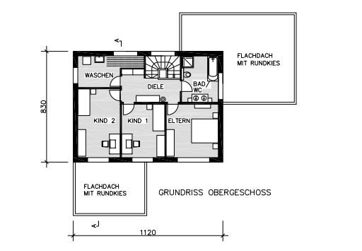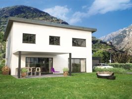 Das zweigeschössige Haus "Wien" mit einfacher, geradliniger Architektur steht für Robustheit und Stärke. Der überdeckte Vorplatz spendet Schatten und lädt zum Entspannen ein. Der Abschluss bildet ein Pultdach.
