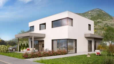 Schlicht aber modern präsentiert sich das Einfamilienhaus "Athen" auf zwei Etagen mit Flachdach als Abschluss. Die praktische Einteilung lässt ein schönes Wohlbefinden aufkommen. Dazu gehört auch die angebaute geräumige Garage und ein grosszügiger Vorplatz, der nach einem stressigen Arbeitstag das ultimative "Muss" bedeutet.