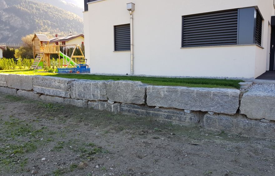 Quadersteine als sauberer Abschluss rund um die Parzelle.