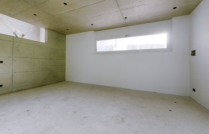 In Tafelstruktur liegend, errichtete Wand und Decke in Sichtbeton.