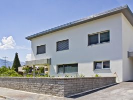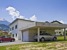 Das Einfamilienhaus besteht aus einem Erdgeschoss mit gedecktem Vorplatz und einem Obergeschoss. Garage und Technik sind seitwärts angebaut. Das im Jahre 2012 fertig erstellte Haus befindet sich in der Gemeinde Steg und wurde im Jahre 2018, durch einen Anbau im Norden, zusätzlich aufgewertet.