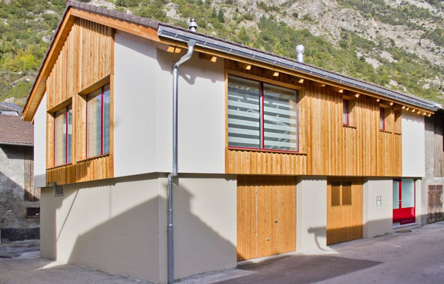 Dies ist ein hervorragendes Beispiel, wie ein landwirtschaftliches Gebäude (Scheune und Stall) in ein Wohnhaus umgestaltet werden kann. Damit wird der Dorfkern von Gampel nachhaltig in die Wohnzone integriert.